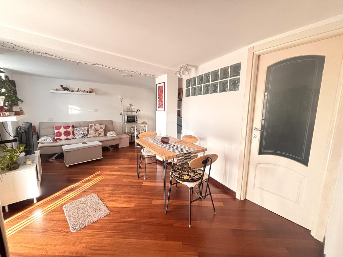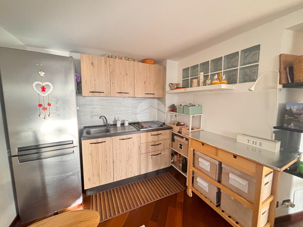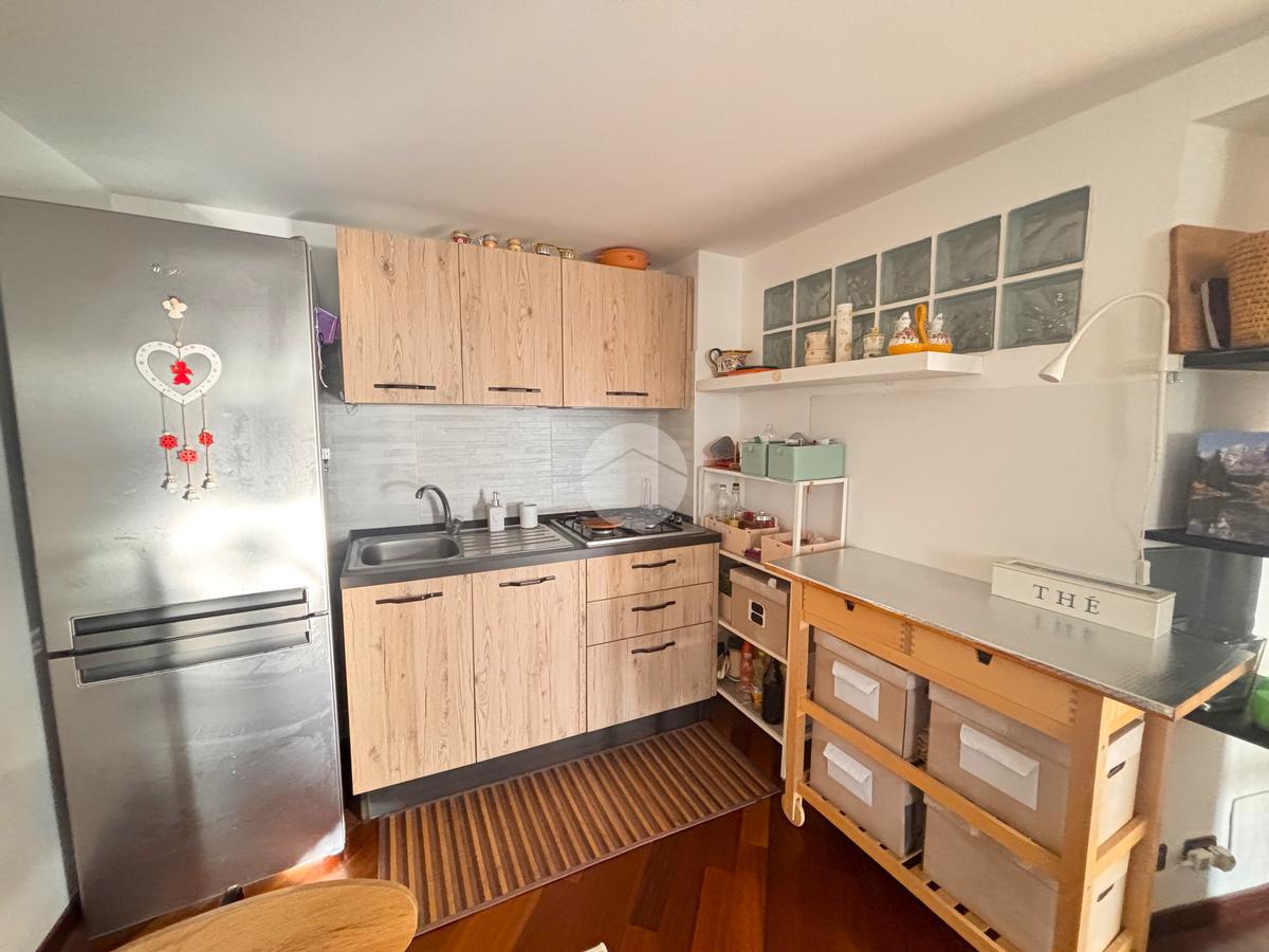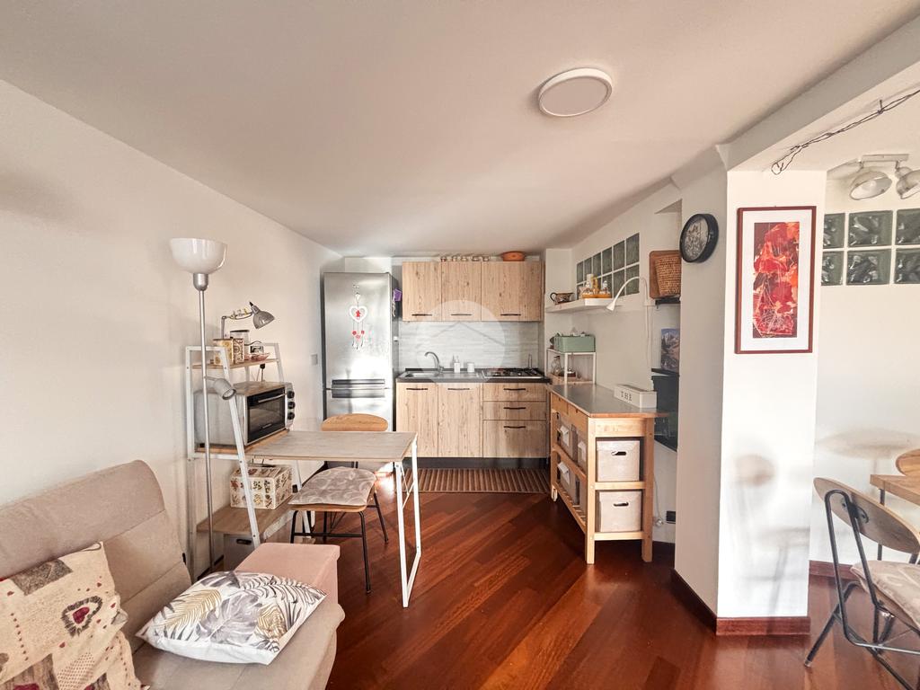 L'appartamento è composto dalla ZONA GIORNO CON ANGOLO COTTURA, che crea un ambiente conviviale.