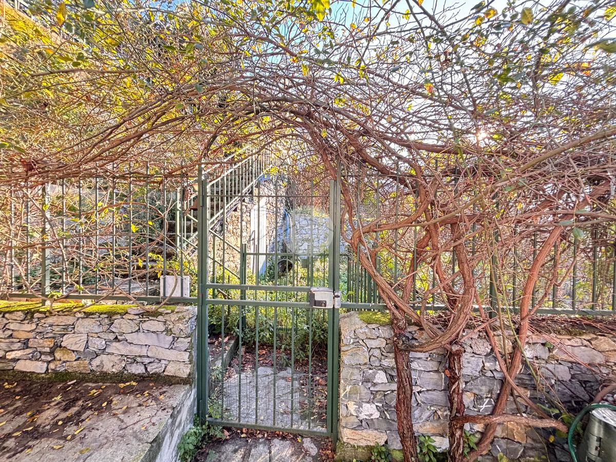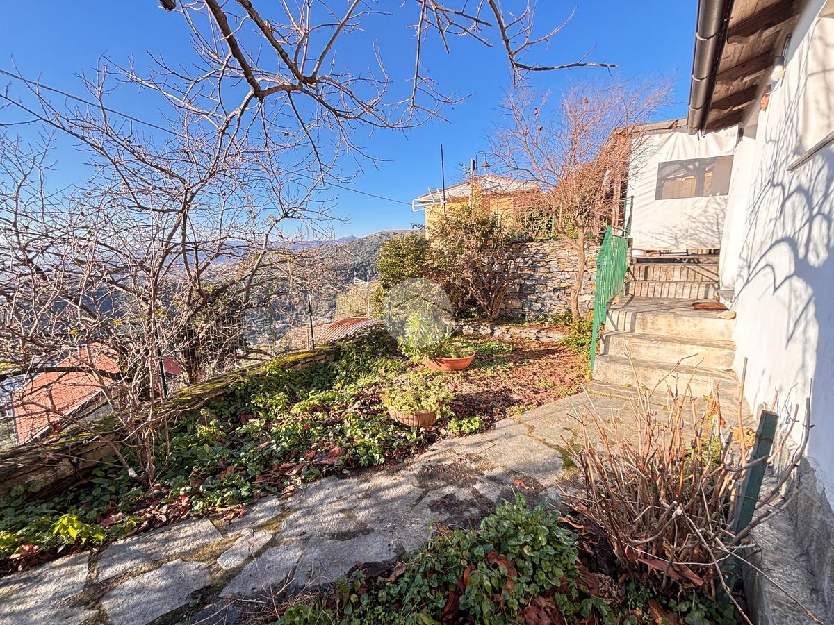 Dalla strada principale, tramite una scala non impegnativa è possibile raggiungere l'ingresso della proprità che si apre su un GIARDINO PIANTUMATO IN PARTE TERRAZZATO DI CIRCA 100 MQ CON VISTA MARE.